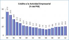 Por sexto año consecutivo (2007-2012), el crédito de la banca múltiple a las empresas está reportando una tendencia ascendente en términos reales, retomando la relación positiva con la actividad económica, misma que se había perdido desde la crisis de 1995. A pesar de esta tendencia …